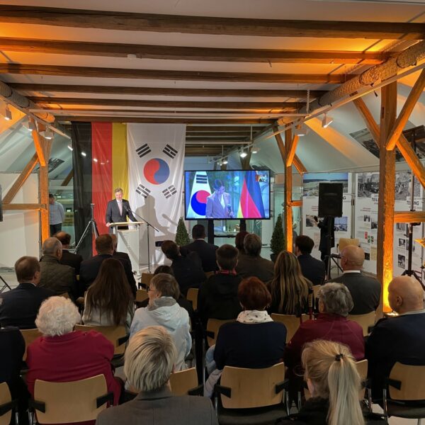 „Wir sind hier in Mödlareuth an einem besonderen Ort, um eine besondere Ausstellung zu eröffnen. Gemeinsamkeiten und Herausforderungen zwischen Südkorea und unserer Geschichte prägen diese Ausstellung“, so Landrat Dr. Oliver Bär.