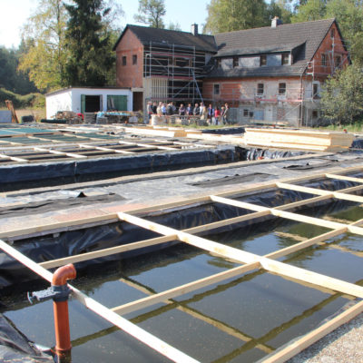 Neun Monate hat der Umbau der Huschermühle zur Flussperlmuschelzuchtanlage gedauert. Die als Wirtfische dienenden Forellen waren zwischenzeitlich in der Lehranstalt für Fischerei des Bezirks Oberfranken in Aufseß im Landkreis Bayreuth ausgelagert. Nun kehren sie in die Becken der neuen Aufzuchtanlage zurück. Dort werden die Kiemen der Forellen mit den mikroskopisch kleinen Larven der Flussperlmuschel – den sogenannten Glochidien – infiziert, wo sie für rund ein Jahr als Parasiten leben, bis sie von selbst abfallen. Das Ganze ist für die Fische völlig ungefährlich. In speziellen Behältern werden die jungen Muscheln dann im Bachwasser gehalten, bis sie bei einer Größe von etwa 15 Millimetern in die Freiheit entlassen werden.