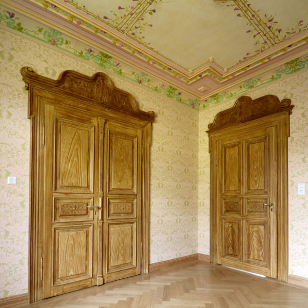 Die Villa wurde von der Familie Selch zwischen 2017 bis 2019 liebevoll saniert. Aufwändige Decken- und Wandmalereien zeugen noch heute von den fernen Reisen der einzigen Fabrikanten. Ob Damen- oder Herrenzimmer, hier ist das Flair der einstigen Fabrikantenvilla noch zu spüren.