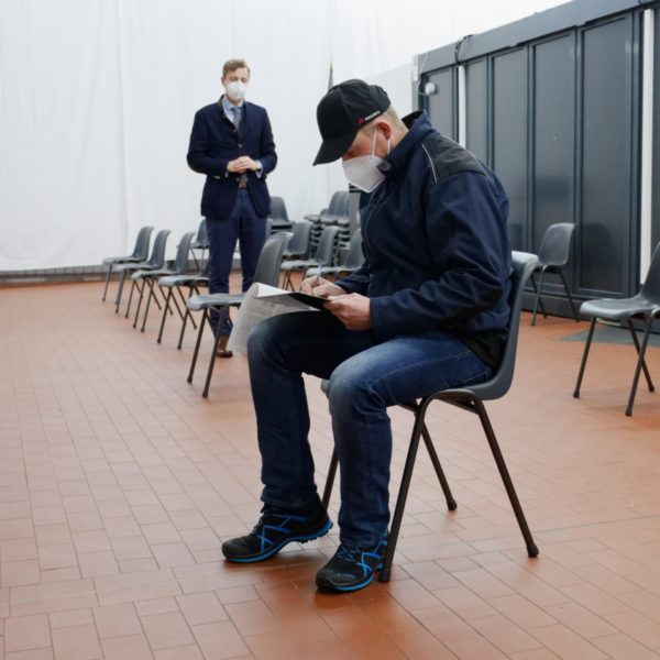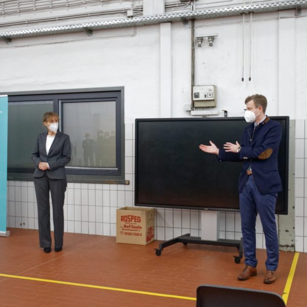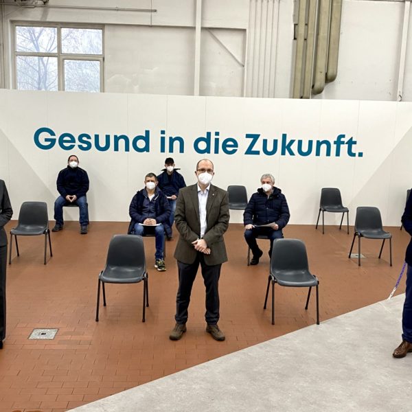Im neuen Corona-Impfzentrum für Stadt und Landkreis Hof fand ein erster Testlauf statt. Ziel war es, den Ablauf für den künftigen Einsatz zu proben und dabei Verbesserungsbedarf aufzudecken. „Wir machen diesen Testlauf, um zu sehen, was wir noch nachjustieren müssen“, erklärte Landrat Dr. Oliver Bär. „Wir wollen möglichst vielen Menschen das Angebot machen, sich impfen zu lassen.“