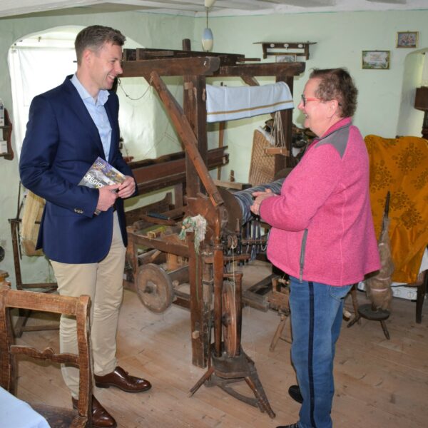 Die Tour mit dem Historiker Dr. Ekkehard Hübschmann, der für den erkrankten Kulturlandschaftsbeauftragten Edwin Greim eingesprungen war, führte unter dem Titel „Auf den Spuren der Handweber“ zu den Weberhäusern in Kleinschwarzenbach, Marlesreuth und Neudorf und schließlich zum Oberfränkischen Textilmuseum in Helmbrechts.