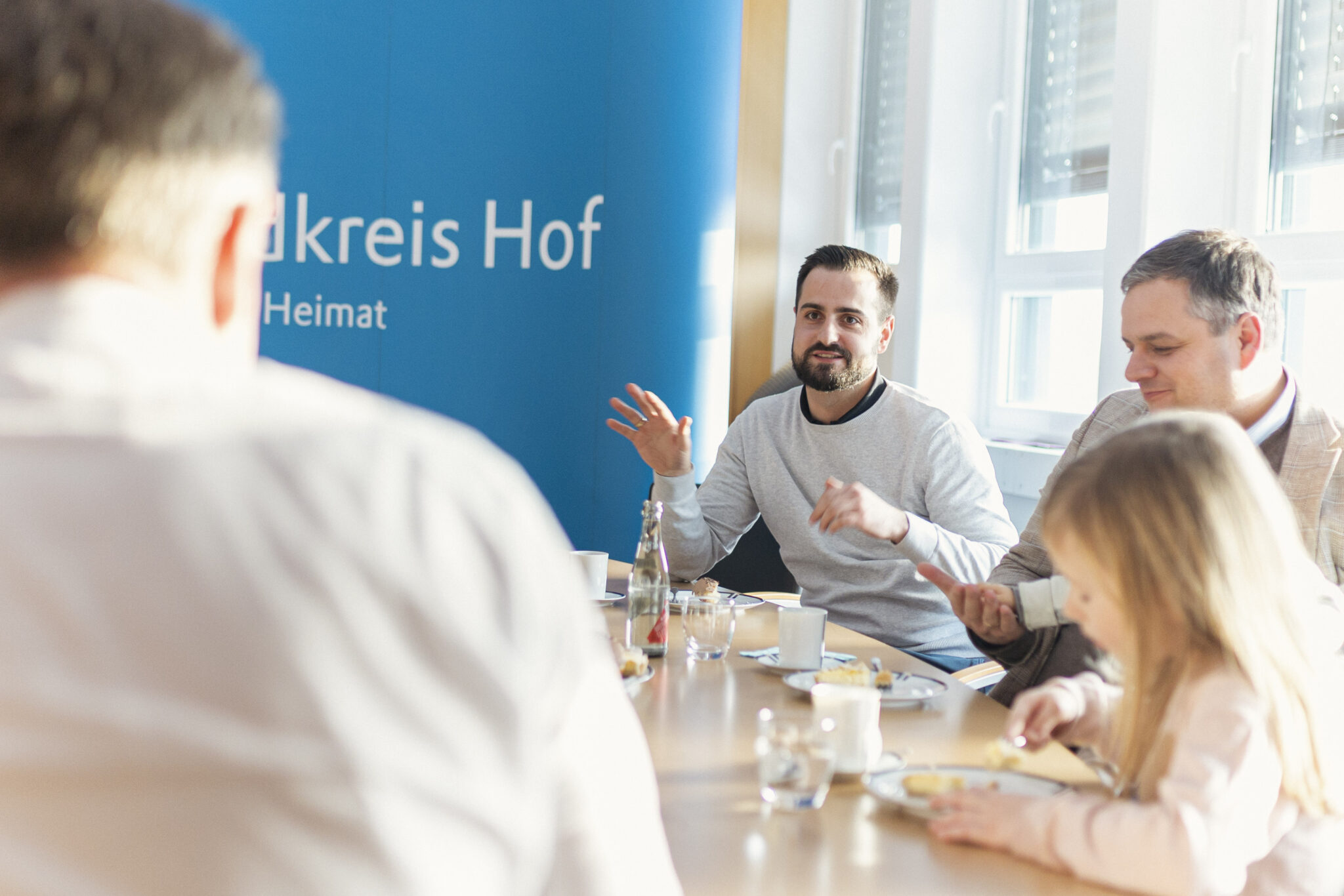 Landrat Dr. Oliver Bär lud die Mitarbeiterinnen und Mitarbeiter des Landratsamtes Hof, die im vergangenen Jahr Eltern geworden sind, zu einem lockeren Beisammensein bei Kaffee und Kuchen ein. Das Treffen bietet die Gelegenheit, den Kontakt zu den jungen Familien aufrechtzuerhalten und den gegenseitigen Austausch zu fördern.