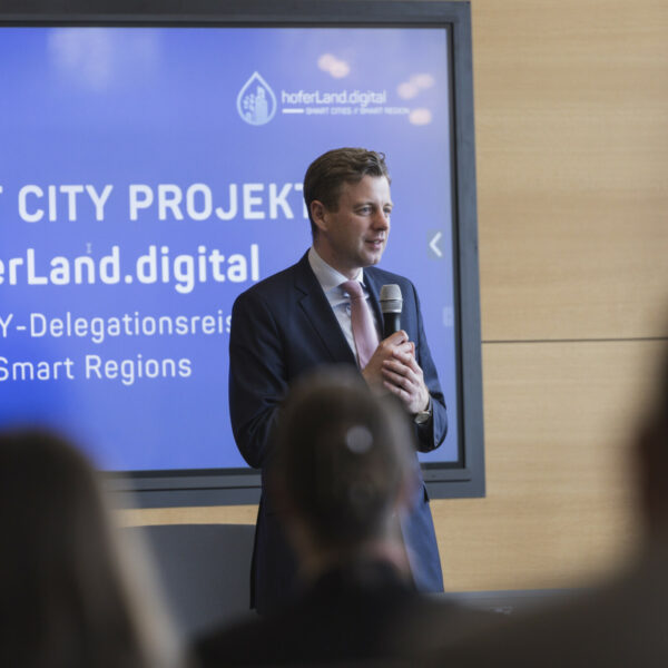 Landrat Dr. Oliver Bär betonte in seinem Grußwort den Wert des gegenseitigen Austauschs und der gemeinschaftlichen Erarbeitung neuer Innovationen. „Mit dem Modellprojekt Smart City erarbeiten wir konkrete Lösungen für die Bürgerinnen und Bürger und schaffen gleichzeitig die digitale Infrastruktur der Zukunft“, so Landrat Dr. Oliver Bär. Er freue sich, dass dies auch bei unseren tschechischen Nachbarn auf so großes Interesse stoße.