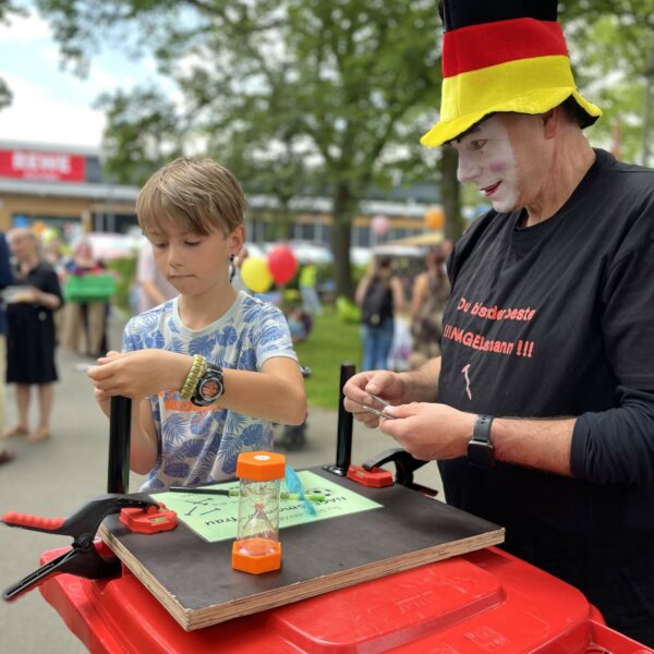 Vor Ort erwartete die Besucher u.a.: Spiele rund ums Wasser, Bastelstationen, Dosenwerfen, Kletterwand, Streetsoccer-Anlage, Einradparcours, Spiele und Montessori-Pädagogik zum Thema Umwelt, JuKu Mobil, Spielmobil, Hüpfburg und vieles mehr.