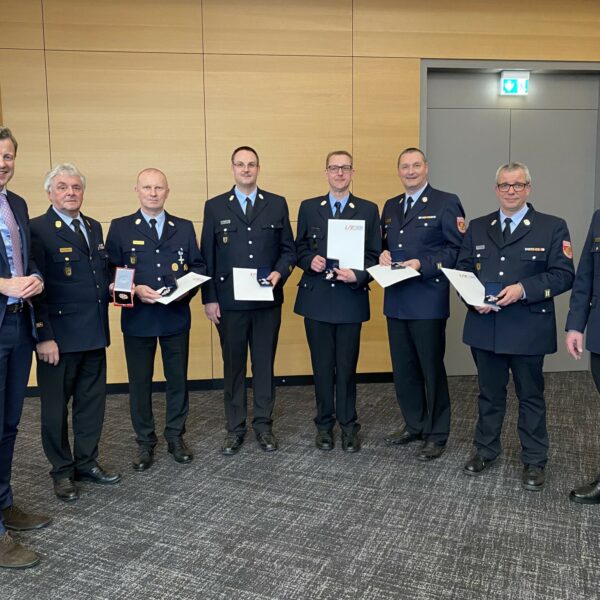 Im Rahmen des Festabends wurden zudem verdiente Mitglieder der Wehren geehrt. Die Kreisbrandmeister Markus Muck, Florian Oertel, Tobias Wunner und Heiko Rödel wurden mit dem Ehrenkreuz in Silber des Landesfeuerwehrverbandes ausgezeichnet. Die Kreisbrandmeister Uwe Lenk und Thomas Dick erhielten das Ehrenkreuz und Gold und wurde zum Ehrenkreisbrandmeister ernannt. Reiner Hoffmann bekam das Ehrenkreuz in Gold des Deutschen Feuerwehrverbandes verliehen. Zudem wurde Pfarrer Zeno Scheirich, der unter anderem für die psychosoziale Notfallversorgung zuständig war, verabschiedet.