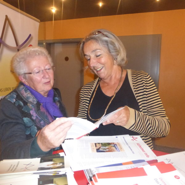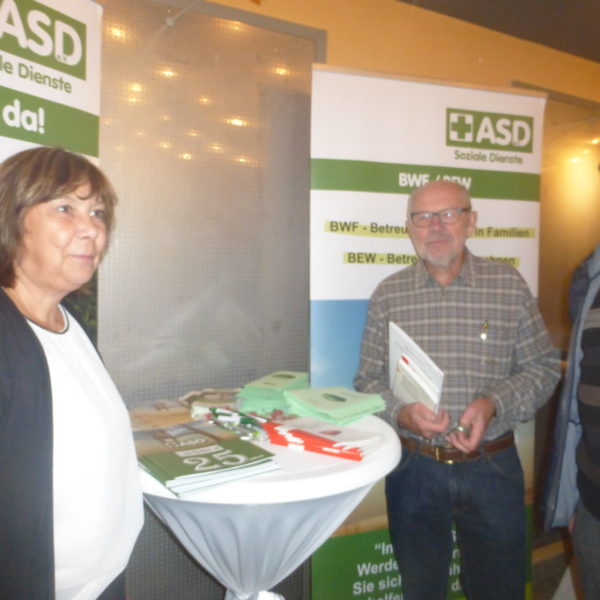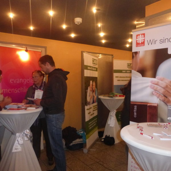 An den Informationsständen im Foyer informierten sich die rund 300 Besucher über Anlaufstellen und konkrete Entlastungsmöglichkeiten. Vertreten waren die Alzheimergesellschaft Hof-Wunsiedel, der ASD e.V. Soziale Dienste Oberkotzau, die Gerontopsychiatrische Beratungsstelle der Diakonie Hochfranken sowie die Angehörigenberatung, der Caritasverband Stadt und Landkreis Hof e.V., die Rummelsberger Diakonie und Schlisio, Praxis für Ergotherapie.