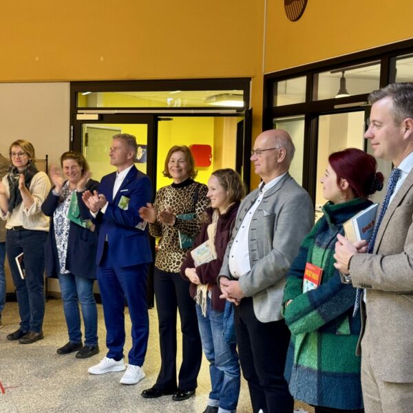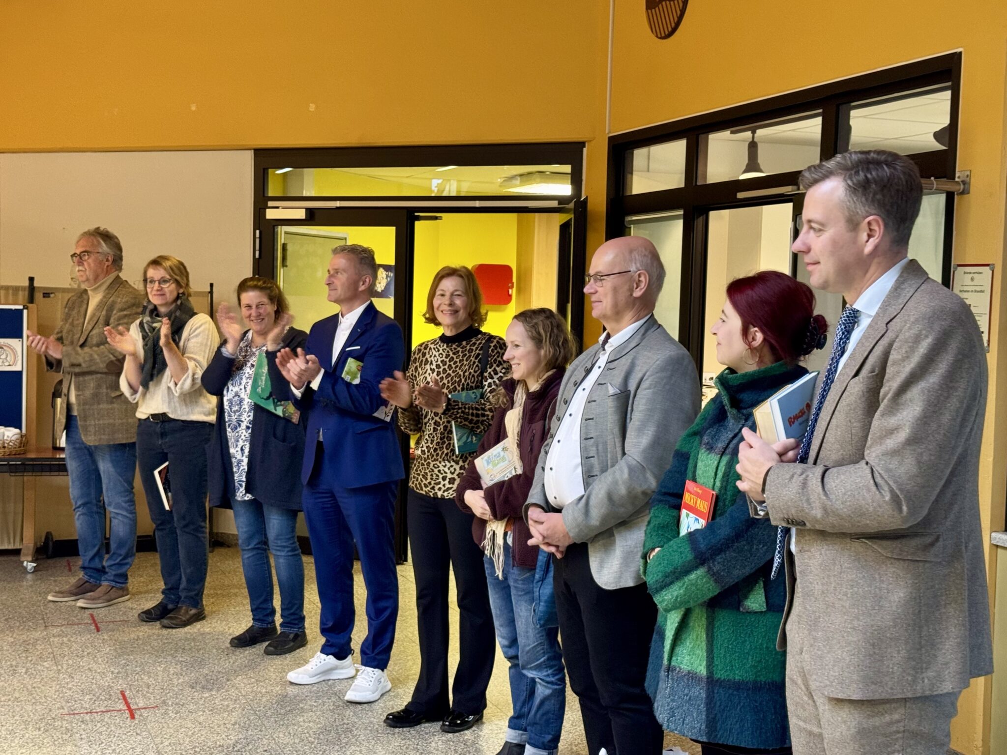 Neun Lesepaten waren diesmal mit dabei. Mitten drin: Landrat Dr. Oliver Bär, der seit 2014 fest zum Vorlesetagsteam gehört. Auch dieses Jahr blieb er seinem Lieblingscharakter – dem Pumuckl - treu und las der Klasse 2b die Geschichte vom Glatteis vor. Die 20 Schülerinnen und Schüler – zusammen mit ihrer Lehrerin Ursula Hühnel – hörten gut gelaunt zu und hatten sichtlich Freude daran, wie der kleine Kobold wieder einmal Chaos und Lacher verbreitete.