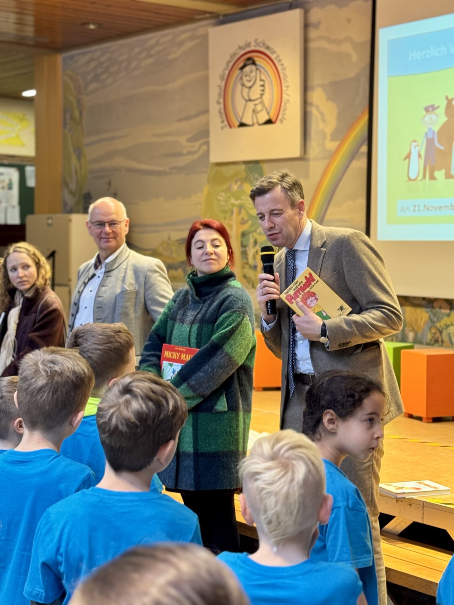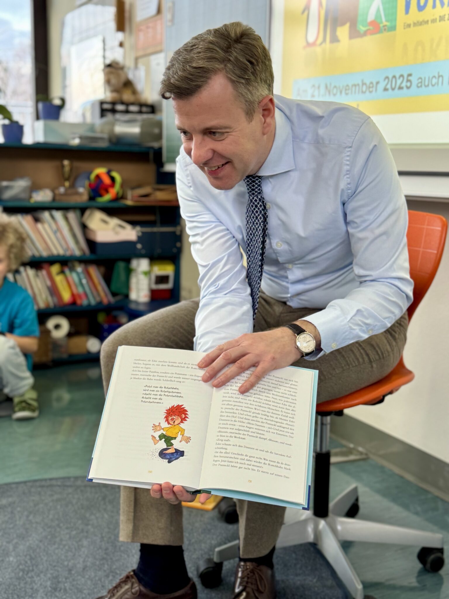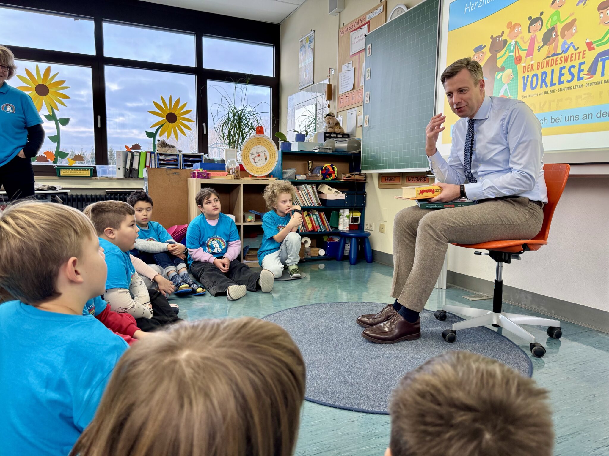 Vorlesetag in der Grundschule Schwarzenbach: Landrat Dr. Oliver Bär liest aus seinem Lieblingskinderbuch