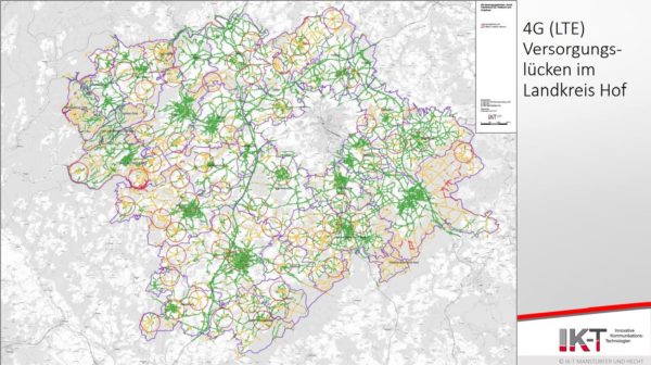 Um die derzeitige Mobilfunkversorgung zu erfassen und weiteren Ausbaubedarf festzustellen, wurde im April 2021 die Firma IKT aus Regensburg mit einer umfassenden Messung der derzeit vorhandenen Mobilfunkabdeckung beauftragt. Auf allen öffentlich befahrbaren Straßen im Landkreis Hof (rund 1.900 km) wurde die Verbindung zu den Netzen der drei in Deutschland tätigen Mobilfunknetzbetreiber Deutsche Telekom, Vodafone, und Telefonica O2 gemessen.