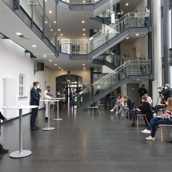Aufgrund der erneut hohen Inzidenzwerte in der Region (Stand heute: 571,7 Stadt Hof und 451,5 Landkreis Hof) haben der Hofer Landrat Dr. Oliver Bär und Oberbürgermeisterin Eva Döhla heute im Rahmen einer Pressekonferenz über weitere Schritte in der Pandemiebekämpfung informiert.