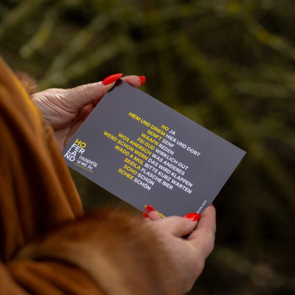 Auf der Rückseite gibt es interessante bis augenzwinkernde Informationen: Zum Thema Genuss gibt es z.B. das Rezept für Hofer Schnitz, zum besseren Verständnis einen kleinen Fränkisch-Kurs, außerdem Hinweise auf weiterführende Infos und den Freizeitführer „Regionalreise“.