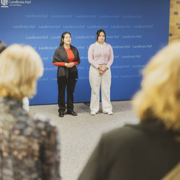 Die Lehrerinnen hinter diesem Projekt, Isabel Schröder, Maria Lonke und Alexandra Schnabel, bedankten sich für die Möglichkeit, die Kunstwerke ausstellen zu dürfen und überreichten als kleines Dankeschön den Kunstkalender 2025 der drei Hofer Mittelschulen. Das gemeinsame Kunstprojekt ist eine Kooperation der Münster-Mittelschule, Christian-Wolfrum-Mittelschule und Hofecker-Mittelschule.