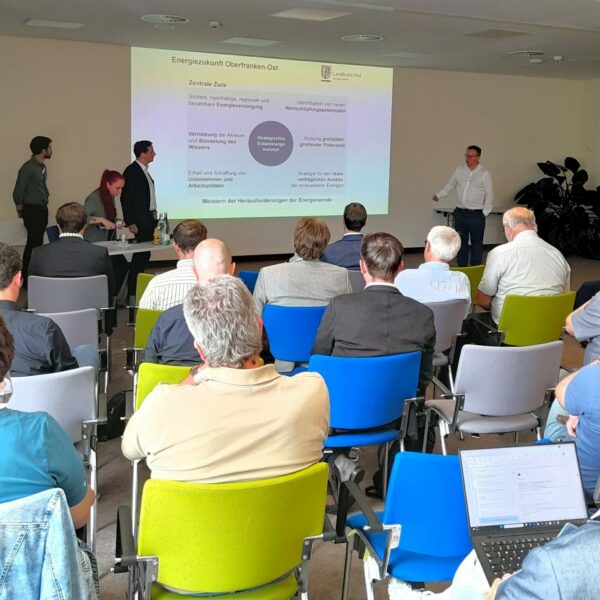 Klaus Gruber (Wirtschaftsförderung Landkreis Hof) und Alexander Popp (Wirtschaftsförderung Landkreis Wunsiedel i.Fichtelgebirge) begrüßten stellvertretend für das gesamte Kernteam die Teilnehmenden und stellten den Projekthintergrund des Projektes vor. Dabei unterstrichen die beiden die Bedeutung der regionalen Zusammenarbeit: „Die Transformation der Energieversorgung ist eine der großen Aufgaben unserer Zeit. Sie gelingt nur, wenn wir sie gemeinsam gestalten“.