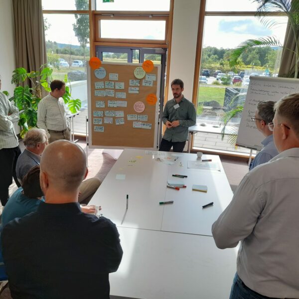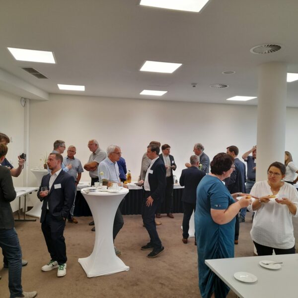 Am Nachmittag standen im Rahmen eines World-Café-Formats drei moderierte Arbeitsgruppen im Fokus. Die Teilnehmenden entwickelten konkrete Visionen für die Jahre 2035/2040 und formulierten Anforderungen an das strategische Konzept. Übergreifende Fragen wie resiliente Infrastruktur, regionale Wertschöpfung oder notwendige politische Rahmenbedingungen wurden ebenfalls diskutiert. Die Ergebnisse wurden am Ende des Workshops zusammengetragen, priorisiert und gemeinsam reflektiert. Den Abschluss bildete ein offener Ausklang, bei dem die Teilnehmenden die Gelegenheit nutzten, sich weiter zu vernetzen.