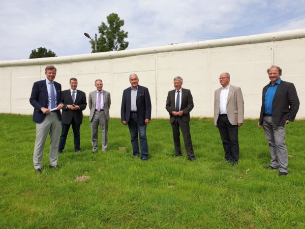 Gruppenbild beim Besuch von Staatsminister a. D. Dr. Ludwig Spaenle und Direktor Rupert Grübl in Mödlareuth (von links): Landrat Dr. Oliver Bär, Bürgermeister Alexander Kätzel (Töpen), Direktor Rupert Grübl (Bayerische Landeszentrale für politische Bildungsarbeit), Landrat Thomas Fügmann (Saale-Orla-Kreis), MdL Alexander König, Museumsleiter Robert Lebegern.
