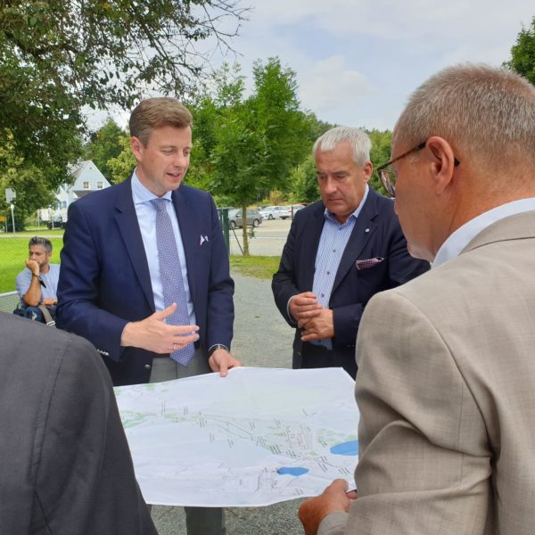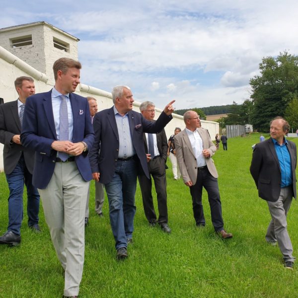 Bei einem Gang über das Gelände wurden Dr. Spaenle sowie die anwesenden Medienvertreter über die geplante Erweiterung und Neukonzeption des Museums informiert. Landrat Dr. Bär stellte das Areal sowie das Erweiterungsprojekt des Zweckverbandes vor. Museumsleiter Robert Lebegern und Rupert Grübl, Leiter des Arbeitskreises zur Neukonzeption, gaben Einblick in historische und konzeptionelle Aspekte der Planungen. Auch der Standort des geplanten Museumsneubaus wurde besucht.