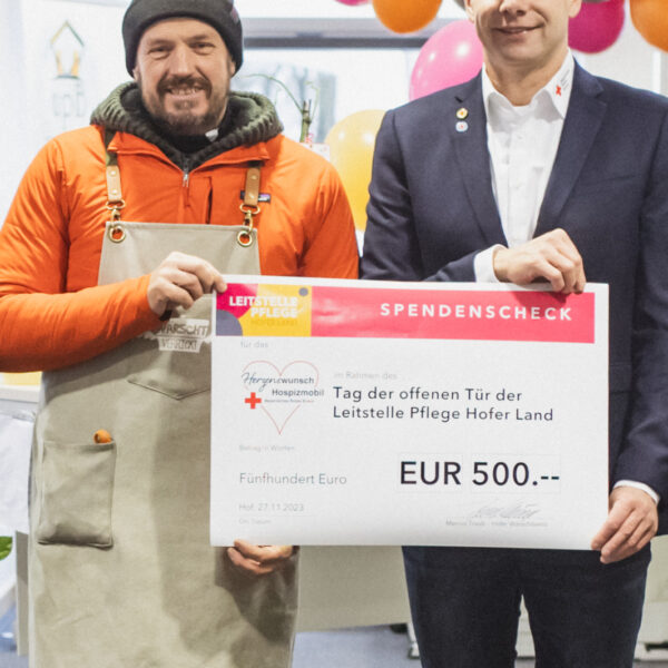 Neben dem Herzwunschmobil wurde in diesem Jahr auch die Leitstelle Pflege Hofer Land mit 1.500€ bedacht. Das Geld soll für die Wohnberatung von Stadt und Landkreis Hof zur Ausgestaltung der neuen barrierefreien Musterwohnung verwendet werden.